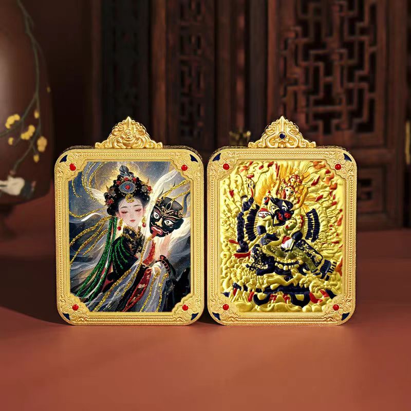 / Tibetan pure hand-painted gold-painted Zakiram thangka pendant